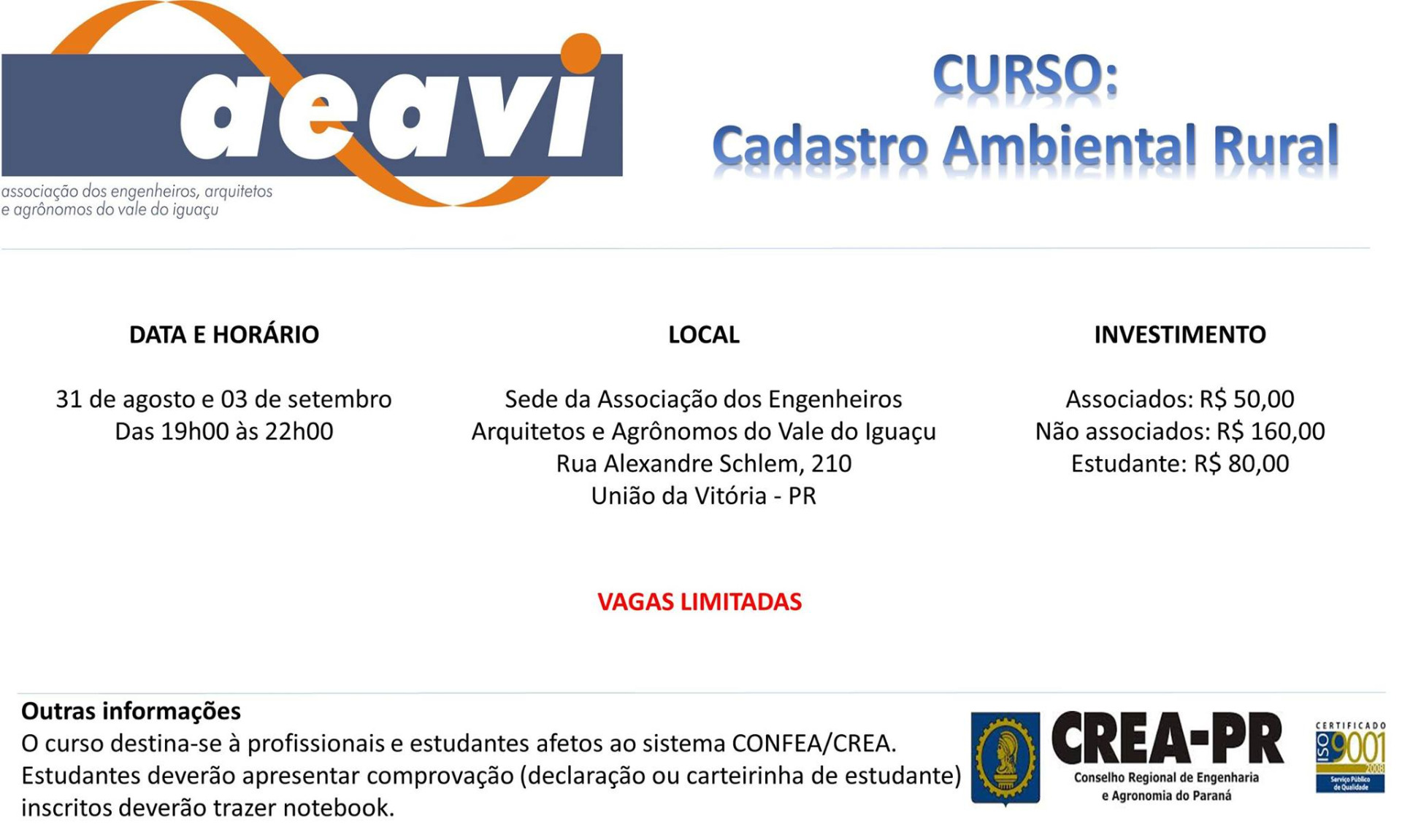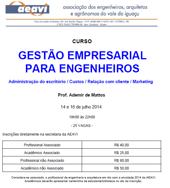 Arquitetos e Agrônomos do Vale do Iguaçu - AEAVI, no uso de suas atribuições e